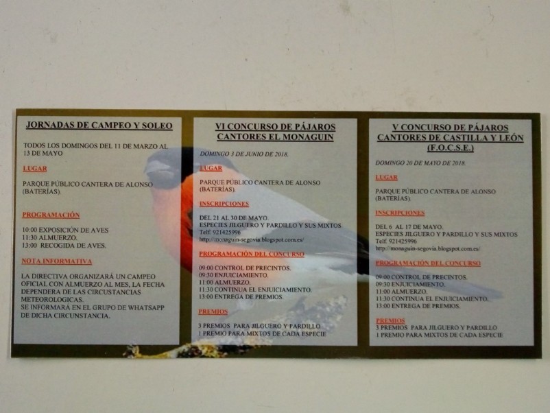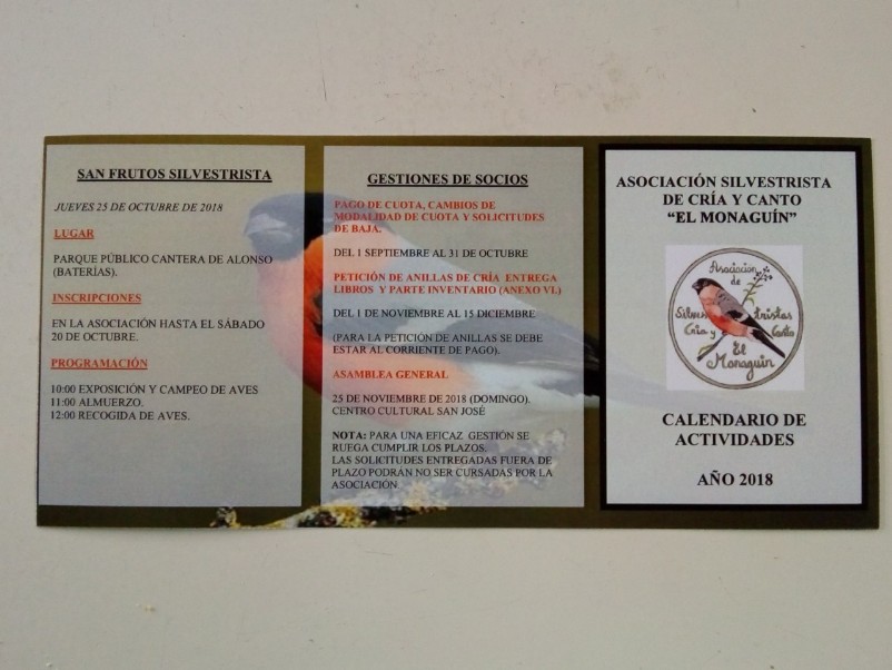 Calendario de actividades año 2.018 - Pajarería LAS AVES DEL PARAÍSO